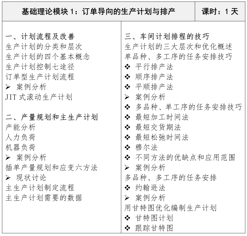 教學周期3天,其中2天1晚理論講授+案例討論+實操演練、1天現場教學+標桿參訪。